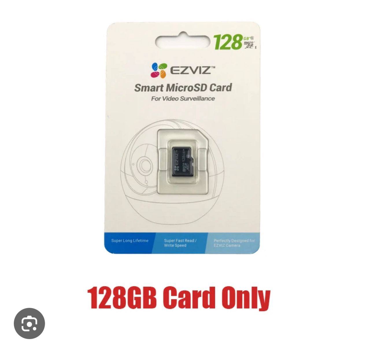 The EZVIZ 128GB memory card is a high-capacity, durable microSDXC card designed for continuous use in security cameras and other compatible devices. It features high-speed performance for smooth video recording, is built to withstand harsh conditions like water and extreme temperatures, and offers wide compatibility beyond just EZVIZ devices.